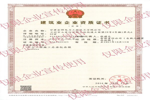 熱列慶祝我公司取得甘肅省住房和城鄉(xiāng)建設(shè)廳頒發(fā)的建筑業(yè)企業(yè)電力工程施工總承包叁級資質(zhì)證書